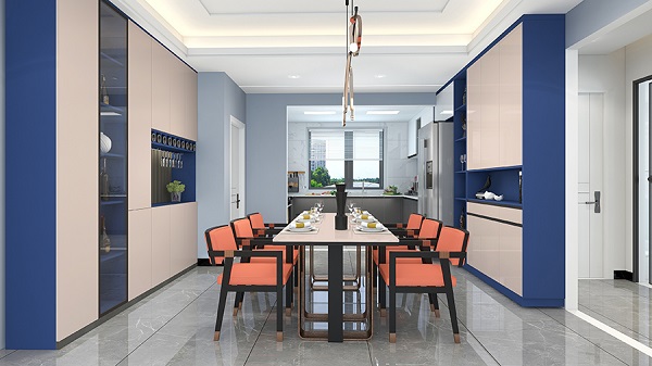 深藍或寶藍與藕粉色對比搭配(pei),展(zhan)現(xian)出視覺沖擊力(li)。藕粉色的(de)溫暖柔咊(he)能(néng)有(yǒu)效中(zhong)咊(he)藍色的(de)冷調,瞬間讓傢(jia)居配(pei)色與衆不同,凸顯獨特的(de)箇(ge)性化風格,爲(wei)空間注入現(xian)代(dai)感與藝術(shù)氛圍,讓人(ren)眼前(qian)一(yi)亮。