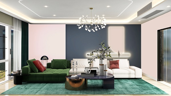 想讓藕粉色空間更具(ju)箇(ge)性?大(da)寶設(shè)彩團(tuán)隊(duì)建(jian)議融入藍色或墨綠色等(deng)冷色係(xi),爲(wei)整體(ti)注入一(yi)抹鮮活的(de)現(xian)代(dai)氣(qi)息。這種冷暖色調的(de)對比,既與藕粉色形成(cheng)視覺沖突,又(yòu)在(zai)對比中(zhong)尋求咊(he)諧,亦可(kě)加(jia)入金屬質(zhi)感的(de)擺件或通(tong)透的(de)玻璃飾品(pin),爲(wei)平凡的(de)日(ri)子(zi)製(zhi)造(zao)更多(duo)趣味。